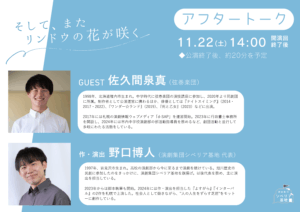 演劇集団シベリア基地#9 『そして、またリンドウの花が咲く』終演後のアフタートークが決定しました!! ■11月22日(土) 14時公演終了後 ■11月23日(日) 15時公演終了後 アフタートークは公演終了後20分間程度 […]